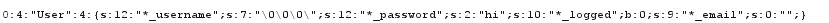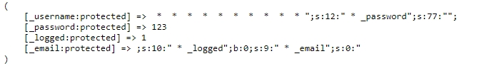 password=";";s:12:"%00*%00_password";s:3:"123";s:10:"%00*%00_logged";b:1;s:9:"%00*%00_email";s:44:
