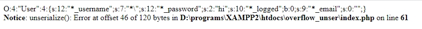 Ở đây chúng ta sẽ thấy việc unserialize thất bại, lỗi ở byte thứ 46: